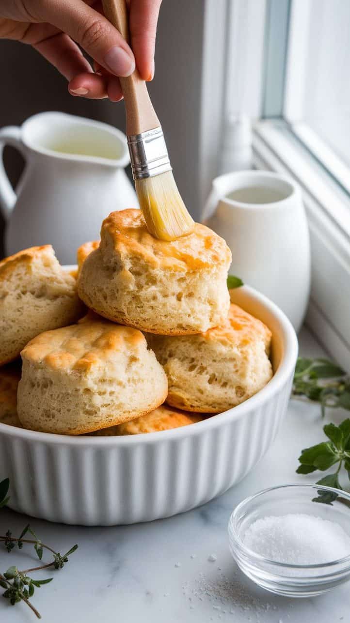 - Bake: Place biscuits on the baking sheet, brush tops with melted butter, and bake for 15-20 minutes, until golden brown.